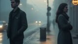 コートの えりを たてながら