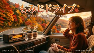 秋の紅葉ドライブをテーマにした心温まるラブソング歌詞。風や景色、二人の時間が優しく描かれた、エモくてノスタルジックな日本語楽曲。