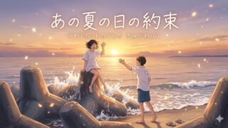 夏の海、テトラポッド、夕日、そしてふたりの約束。きらめく記憶と切ない恋心を描いた青春ソングの歌詞を紹介します。ノスタルジックで心に残る一篇。