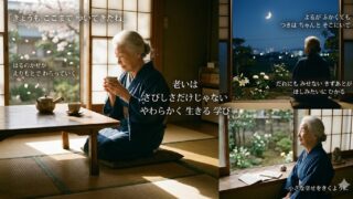 老いは寂しさだけではない。ゆっくり流れる時間の中で、自分をほどき、今日を抱きしめる。年齢を重ねることの優しさと強さを静かに描いた心に沁みる歌詞。