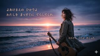 夜明け前の光をテーマに人生の葛藤や孤独,それでも前に進もうとする強さを描いた心に響く歌詞,優しさと再生を感じるエモーショナルな一曲