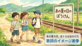 幼い頃の冒険、友だちとの思い出、そして大人になっても色あせない夏の記憶を描いたノスタルジックな歌詞。友情と勇気、成長の物語をやさしい言葉で綴った楽曲。